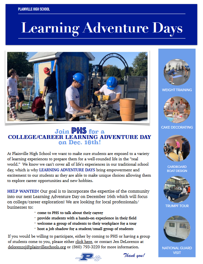 Join PHS for a COLLEGE/CAREER LEARNING ADVENTURE DAY on Dec. 16th!