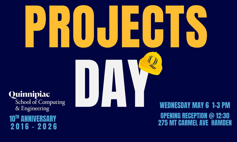 Quinnipiac - School of Computing & Engineering 275 Mt Carmel Avenue, Hamden, CTWe hope you'll join us for our annual Projects Day where we celebrate the hard work of our graduating seniors and their capstone projects & papers. The Projects Day poster presentations will take place from 1:00 PM to 3:00 PM on Wednesday, May 6 in the CCE Building on the QU Mount Carmel Campus; it is a drop-in event where ...Read more